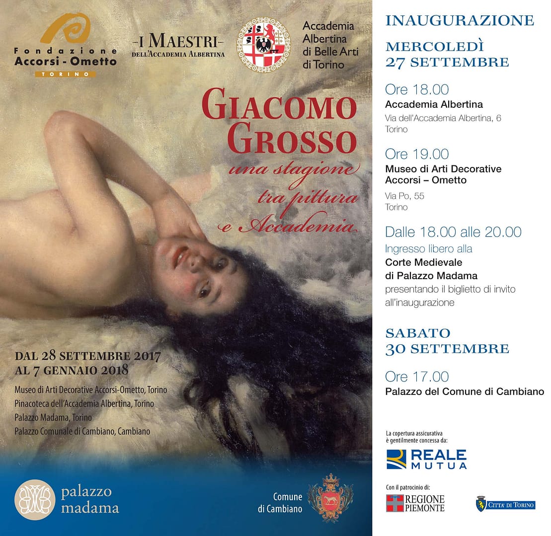 La mostra dedicata a Giacomo Grosso è il secondo appuntamento del ciclo «I Maestri dell’Accademia Albertina», promosso e organizzato dall’Accademia Albertina di Belle Arti e dal Museo di Arti Decorative Accorsi-Ometto e inaugurato, nel 2016, con la rassegna su Andrea Gastaldi.
